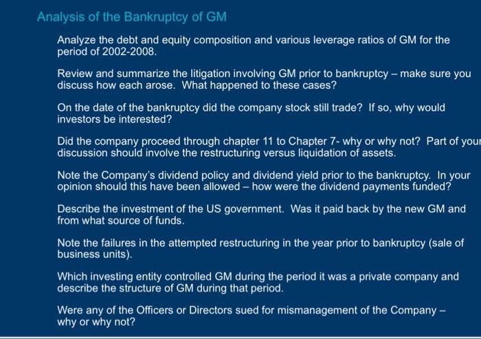 Analysis Of The Bankruptcy Of Gm Analyze The Debt And Chegg Com